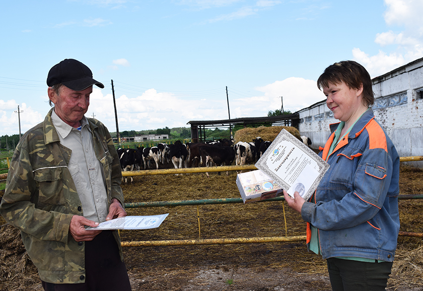 Ад райкама прафсаюза работнікаў АПК Жанна Мацвеева і Анатоль Трыпольскі атрымалі падзячныя лісты і каштоўныя падарункі.