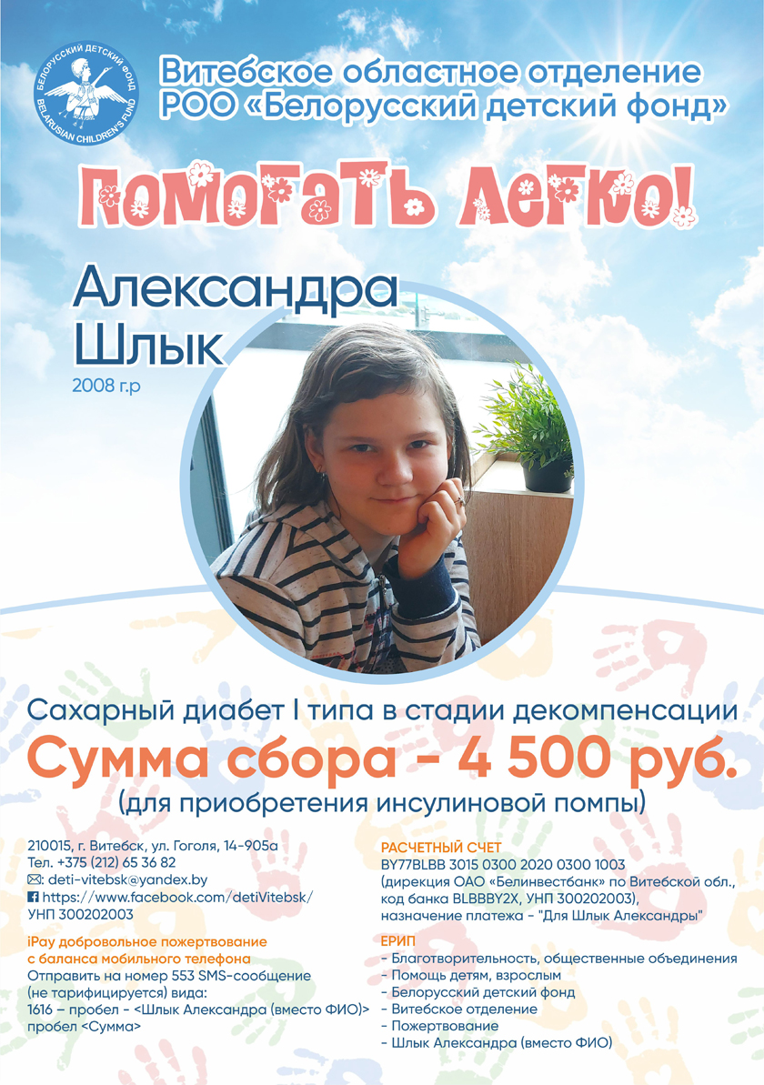 Белорусский детский фонд собирает средства для помощи Александре Шлык