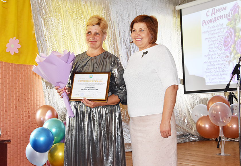 Потым слова (песню, танец) трымалі тыя, хто прыйшоў павіншаваць імянінніцу. Ад раённай улады яе віншавалі намеснік старшыні райвыканкама Ірына Шалахава і начальнік аддзела ідэалагічнай работы, культуры і па справах моладзі Андрэй Мазанкоў. Ларыса Дземідовіч атрымала Ганаровую грамату раённага Савета дэпутатаў, кветкі і шчырую ўдзячнасць за творчасць. «Вам і вашым песням хочацца верыць!», – падкрэсліла Ірына Іванаўна.