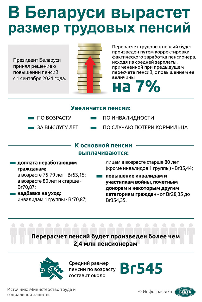 В Беларуси вырастет размер трудовых пенсий на 7%