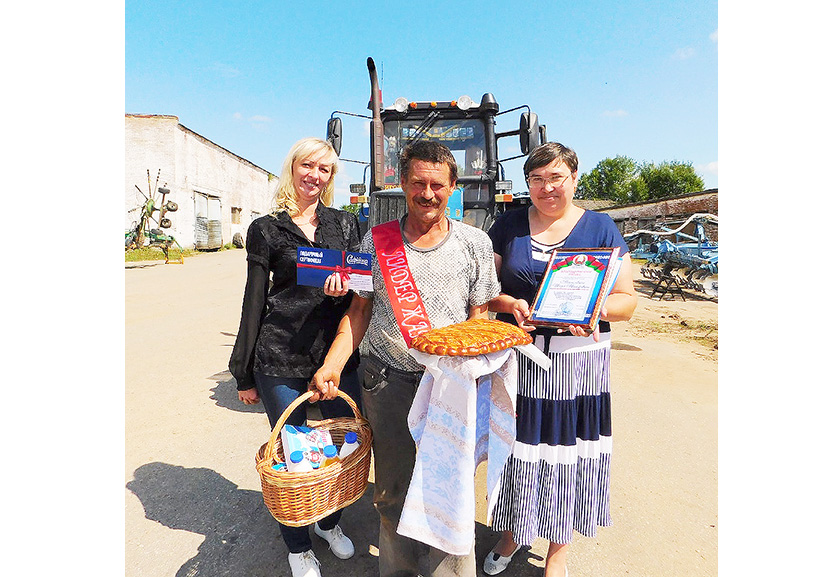 Перадавіку ўручылі сертыфікат на атрыманне грашовай прэміі, а ў дадатак – карзіну з прадукцыяй маркі «Сафійка» Полацкага малочнага камбіната і прыгожы духмяны пірог.