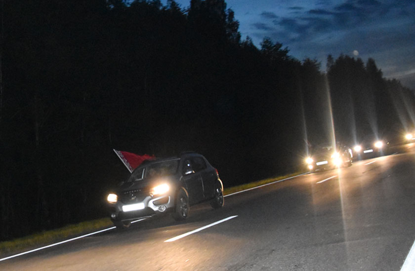 После обмена символическими подарками шумилинские патриоты присоединились к автопробегу, который отправился в Городок.