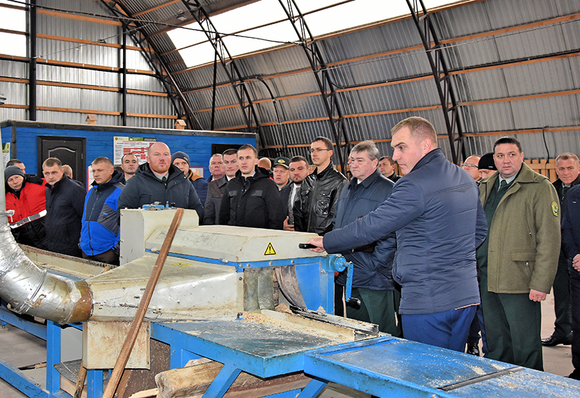 Акрамя адкрыцця ніжняга склада лесапрадукцыі ўдзельнікі калегіі пабывалі на дзеючых вытворчых аб’ектах Шумілінскага лясгаса. У прыватнасці, азнаёміліся з работай поля дарошчвання і ляснога гадавальніка, цэха дрэваапрацоўкі, рамонтнай майстэрні. Пасля адправіліся на лесасекі Мікалаеўскага лясніцтва, якія пацярпелі падчас чэрвеньскіх бураломаў, і паглядзелі, як тут працуе спецыяльная тэхніка для лесааднаўленчых работ. Увазе прысутных была прадэманстравана работа мульчараў для здрабнення пасечаных рэшткаў і пнёў і сучасныя плугі для падрыхтоўкі глебы пад лясныя культуры.