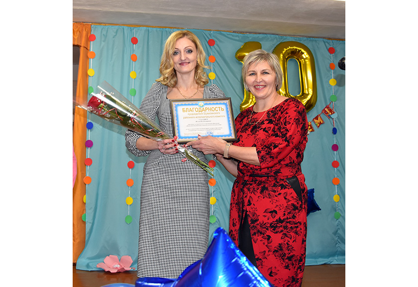 За шматгадовую добрасумленную працу ў сістэме адукацыі раёна, высокі прафесіяналізм і асабісты ўклад у выхаванне падрастаючага пакалення аб’яўлена Падзяка старшыні раённага выканаўчага камітэта дырэктару «Шумілінскага раённага сацыяльна-педагагічнага цэнтра» Юліі Уласевіч. Яе ўручыла намеснік старшыні камісіі па справах непаўналетніх райвыканкама Людміла Грузневіч.