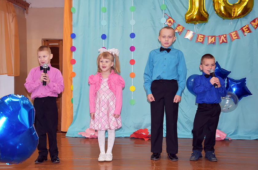 Першымі на сцэну падняліся дзеткі, якія зараз знаходзяцца ў прытулку. Вершаванае віншаванне ў дзяцей атрымалася шчымліва-прачулым. І гэта быў сапраўды яркі і запамінальны пачатак святочнага мерапрыемства.