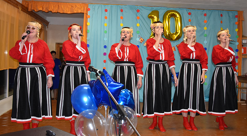 На сцэну выйшаў увесь калектыў СПЦ, а 10 свечак на святочным торце задулі дзеці, якія знаходзяцца ў прытулку.