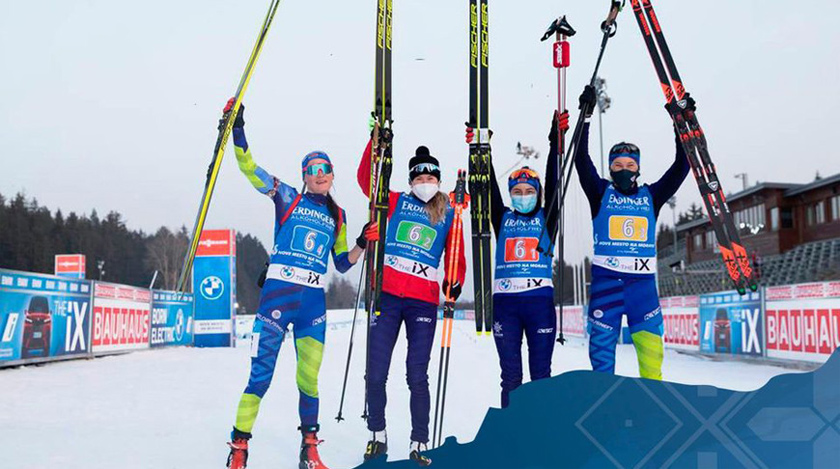 Белорусские биатлонистки Ирина Лещенко, Динара Алимбекова, Елена Кручинкина, Анна Сола отстали от победительниц на 57,9 сек. (0 промахов + 6 дополнительных патронов).