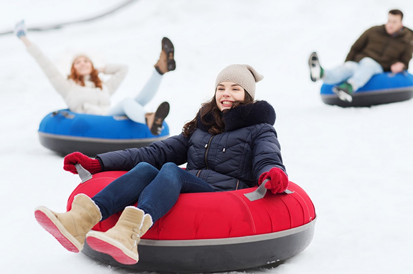 - Кататься на санках-ватрушках следует сидя. Не пытайтесь кататься на тюбинге стоя или прыгая, как на батуте
