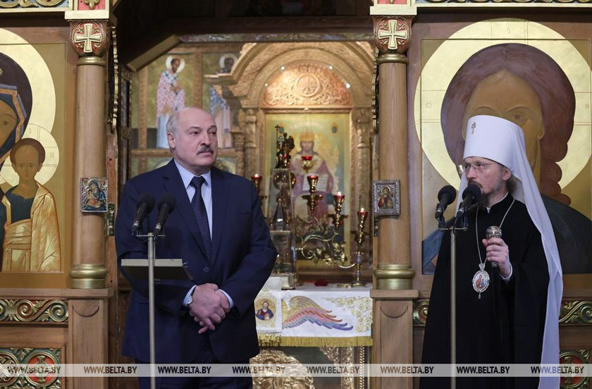 Главу государства встретил митрополит Минский и Заславский Вениамин, Патриарший Экзарх всея Беларуси. В храме также присутствовали воспитанники воскресной школы прихода храма, прихожане.