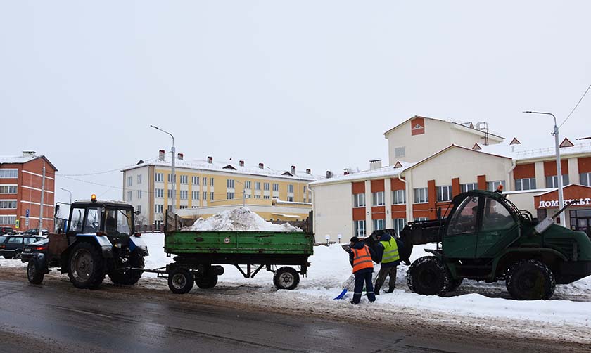 – Пачну з Шуміліна. На «снежныя» работы ў нас выдзелены чатыры адзінкі тэхнікі – грэйдзер, тры трактары з навяснымі адваламі для снегу, адзін з іх мае спецыяльныя шчоткі для ачысткі тратуараў. Прыдамавыя тэрыторыі шматкватэрных дамоў ачышчаюць чатыры работнікі. Тэхніка на ачыстку вуліц выязджае з 4 гадзін раніцы. Пры неабходнасці пасля ачысткі ад снегу дарогі пасыпаюцца пясчана-солевай сумессю, а тратуары – пяском. У першую чаргу адпрацоўваюцца найбольш ажыўленыя вуліцы і дарогі. Гэта робіцца для таго, каб людзі без праблем дайшлі і даехалі да работы, да бальніцы і ўстаноў адукацыі.