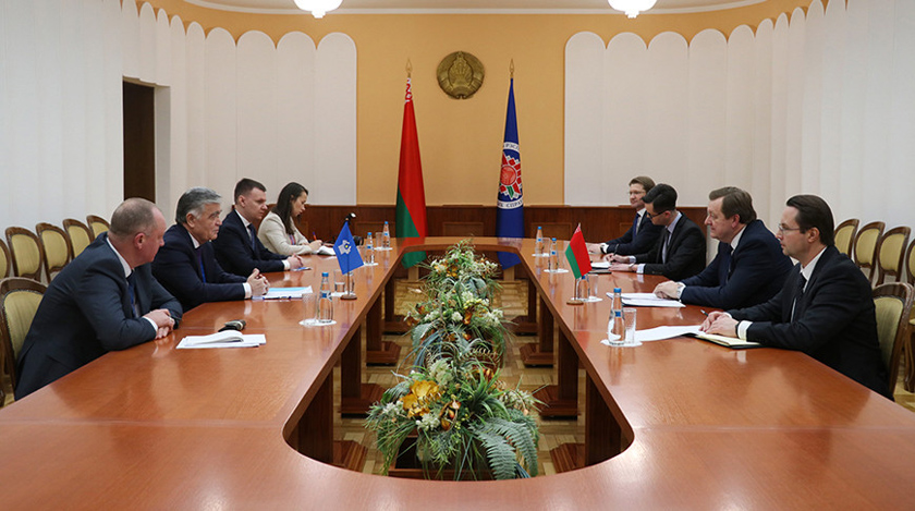 24 февраля, Минск /Корр. БЕЛТА/. Первый заместитель министра иностранных дел Республики Беларусь Сергей Алейник 24 февраля встретился с главой Миссии наблюдателей от СНГ, заместителем председателя Исполнительного комитета — исполнительного секретаря СНГ Ильхомом Нематовым. Об этом БЕЛТА сообщили в белорусском внешнеполитическом ведомстве.