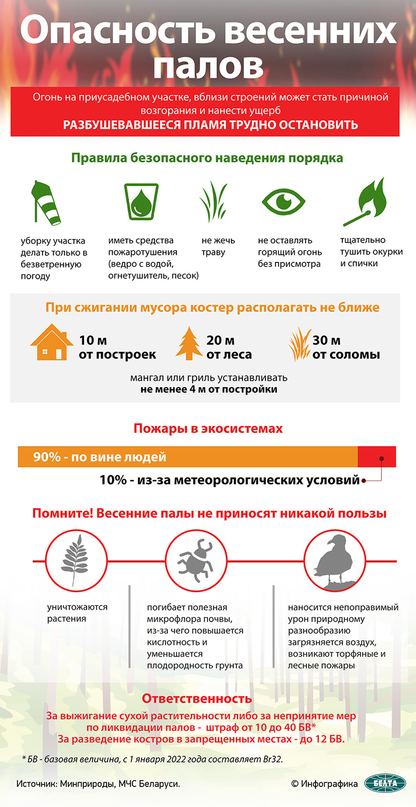 За выжигание сухой растительности либо за непринятие мер по ликвидации палов — штраф от 10 до 40 БВ*