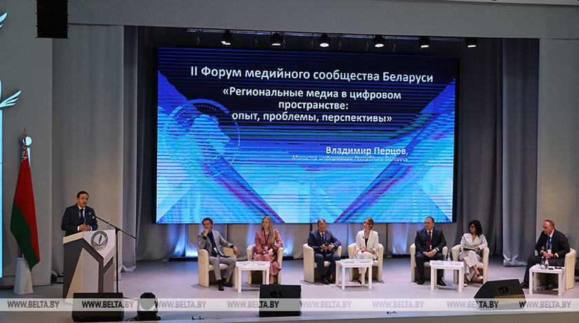 «У нас II Форум медийного сообщества Беларуси. Здесь не только представители региональных медиа (хотя их подавляющее большинство), есть руководители и представители центральных республиканских СМИ», — сказал Владимир Перцов.