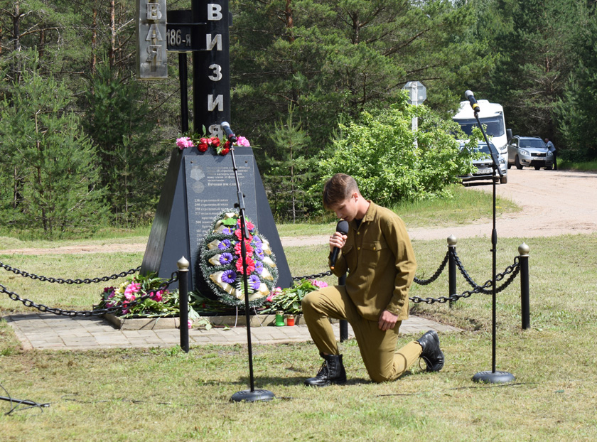 Вядучыя расказалі пра нямецкіх агрэсараў, якія з’явіліся ў Бешанковіцкім раёне 4 ліпеня 1941 года, як вяліся жорсткія баі, а да 9 ліпеня ўся тэрыторыя была акупавана. З 5 па 9 ліпеня рубеж Гняздзілава-Кардон, на правым беразе Дзвіны, насупраць Бешанковіч, абараняла 186-ая стралковая дывізія, якая згубіла ў няроўнай схватцы з ворагам каля 40% асабістага саставу. У гонар салдат-абаронцаў у 2015 годзе тут быў устаноўлены помнік. Ля яго прайшла літаратурна-музычная кампазіцыя «Памяць жывая». Прадстаўнікі двух раёнаў чыталі вершы пра вайну, спявалі песні. Яны краналі да глыбіні душы, бо праслаўлялі наш край, мужнасць салдат, гераізм савецкага народа падчас Вялікай Айчыннай вайны.