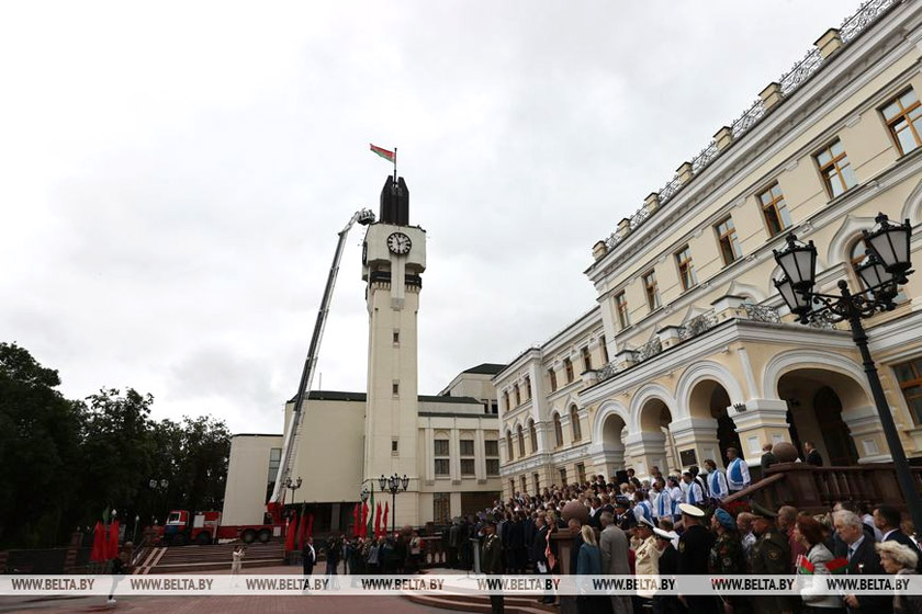 Флаг подняли на башню здания Витебского облисполкома. Прямоугольное полотнище размером 2х4 м теперь развевается на высоте 56 м. В торжественной церемонии чествования Государственного флага Республики Беларусь приняли участие руководство области и города, представители общественности, активисты БРСМ, творческие коллективы, школьники. Парадные расчеты войск Витебского гарнизона, сотрудников областных управлений Департамента охраны МВД, МЧС и УВД прошли торжественным маршем под звуки военного духового оркестра. Почетное право поднять символ государственного суверенитета предоставили работникам пожарного аварийно-спасательного отряда «Витязь».