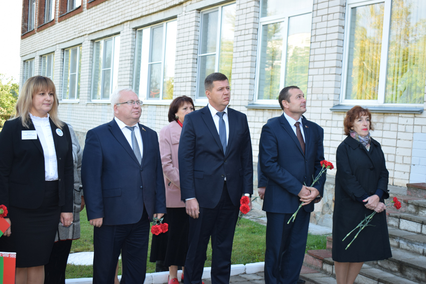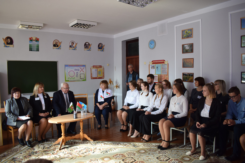 Пасля урачыстай цырымоніі Уладзімір Цярэнцьеў правёў сустрэчу са старшакласнікамі школы, падчас якой коратка нагадаў этапы станаўлення і развіцця беларускага народу і дзяржавы, адзначыўшы, што дата 17 верасня не выпадкова з’яўляецца святочнай – Днём народнага адзінства. У гэты дзень у 1939 годзе беларусы ўпершыню у гісторыі аб’ядналіся ў рамках адной уласнай нацыянальнай дзяржавы – Беларускай ССР, якая стала фундаментам і папярэднікам сучаснай Рэспублікі Беларусь. Кіраўнік абласнога Савета задаў пытанне школьнікам, ці ведаюць яны сваіх продкаў, якія ваявалі ў гады Вялікай Айчыннай вайны, якія маюць ўзнагароды і за якія подзвігі. Ён параіў ім вывучаць сямейную гісторыю, ведаць і шанаваць памяць сваякоў. Гэта аб’ядноўвае нас, робіць мацнейшымі, сказаў ён.