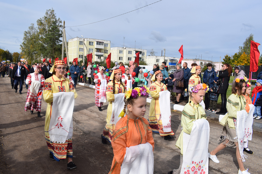 Пад гучны марш у суправаджэнні ансамбля барабаншчыц Шумілінскай дзіцячай школы мастацтваў дэлегацыі гаспадарак раёна прайшлі ў святочным шэсці «Мы славім імя хлебароба». Каравай з зерня новага ўраджаю – сімвал Радзімы, яе багацця і дабрабыту – быў уручаны старшыні раённага выканаўчага камітэта Сяргею Галынчыку.