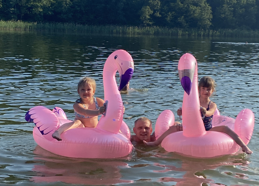 Автор снимка Воронцова Алиса, на снимке: слева направо Масько Софья, Масько Виталий, Воронцова Валерия. Фото сделано на озере в д. Лесковичи
