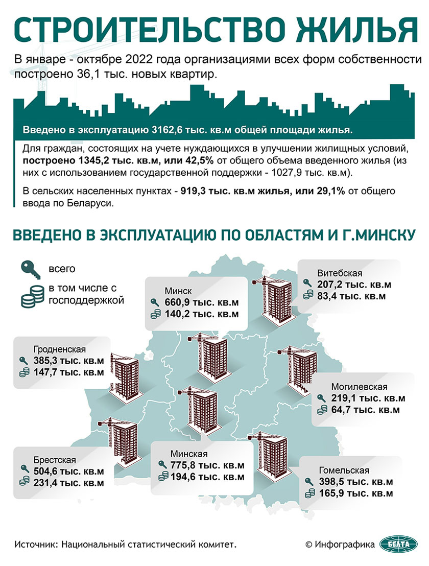 Строительство жилья в 2022 год в Беларуси. Инфографика