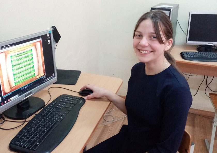 Сямікласніца Ліза Паўлючэнка ўдзельнічала ў такім конкурсе ўпершыню. «Настаўніца інфарматыкі Надзея Барысаўна Бабаева прапанавала мне паспрабаваць свае сілы, і я згадзілася, – кажа дзяўчынка. – Мы разам выбралі намінацыю “Запішам яркія радкі ў гісторыю краіны”. Для мяне і для маіх аднагодкаў заўсёды цікавыя незвычайныя ўрокі. Таму я вырашыла стварыць камп’ютарную гульню “Беларусь у маім сэрцы”, прысвечаную Году гістарычнай памяці. Па розных тэмах – гісторыя, навука, культура, спорт, адукацыя – падбірала цікавыя пытанні з гісторыі нашай краіны. Больш абапіралася на гісторыю сваёй вобласці: падабрала цікавыя пытанні пра Ефрасінню Полацкую, Марка Шагала, пра першы трамвай у Віцебску, пра герояў Вялікай Айчыннай вайны. На стварэнне камп’ютарнай гульні спатрэбілася каля двух месяцаў, і мяне гэта работа вельмі захапіла».