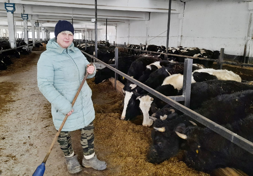 «Наша задача – пераганяць жывёлу з аднаго месца на другое, калі чысцяцца памяшканні, падсунуць кармы, сачыць за парадкам, – кажа аператар Алена Семчанка, якую засталі за работай. – Кармы для жывёлы прывозяць з чатырох новых сянажных траншэй, якія пабудавалі сёлета каля комплексу».