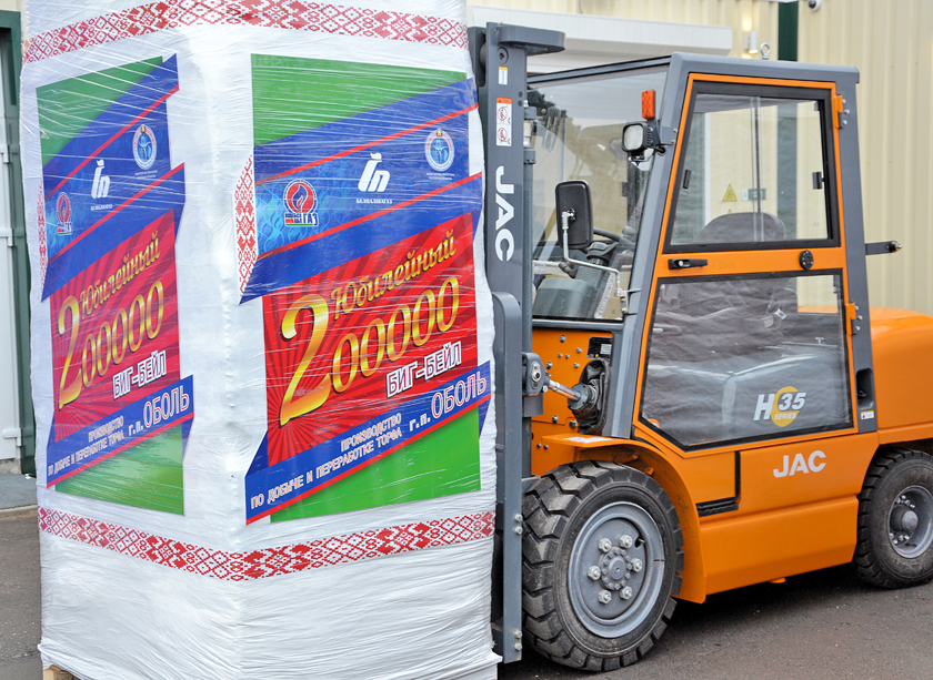 В первой половине дня участники мероприятия посетили производство по добыче и переработке торфа в г. п. Оболь, где познакомились с предприятием, продукцией, которую оно выпускает, осмотрели экспозицию торфодобывающей техники. Торжественно выпустили 200000 биг-боль с продукцией.