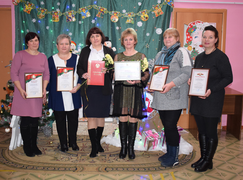 Ірына Шалахава ўручыла Ганаровую грамату райвыканкама галоўнаму бухгалтару ТЦСАН Святлане Івановай, Падзяку старшыні райвыканкама – сацыяльнаму работніку цэнтра Тамары Непляховіч.