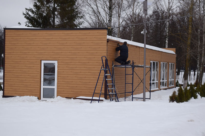 Пры будаўніцтве за аснову ўзялі стары фундамент, праўда, яго крыху пашырылі. Будаўнічая брыгада на месцы вырабіла каркас з металу. Памяшканне абабілі сайдынгам, устанавілі вокны і дзверы, накрылі дах. Зараз вядуцца ўнутраныя работы па ўцяпленні і правядзенні электраправодкі.