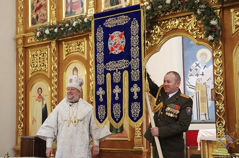 В самом древнем городе Беларуси ‑ Полоцке в Богоявленском кафедральном соборе Епископ Полоцкий и Глубокский Игнатий передал начальнику областного управления МЧС Сергею Мелешкину Хоругвь Витебского областного управления МЧС.