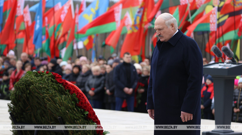 Президент отметил, что 22 марта в Беларуси оплакивают жителей почти 11 тыс. деревень, поселков и хуторов, сожженных частично или полностью. «Мы оплакиваем всех невинных жертв нацизма, всех не вернувшихся с той войны героев. Это 50 миллионов жителей планеты. Большая часть — наши советские люди. Вечная им память», — сказал белорусский лидер.