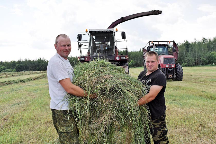 Ад КВК здробненую зялёную масу адвозяць Сяргей Антонаў (бацька Аляксандра), Сяргей Раманаў і Аляксандр Сладкі. Механізатары расказалі, што ўраджайнае поле, на якім працуюць – 18 гектараў. Трава была па пояс, таму прастойваць не прыходзіцца, бо ўтрох ледзь паспяваюць адвозіць “зялёнку” да сянажнай траншэі, якую закладваюць ля майстэрні аг. Слабада.