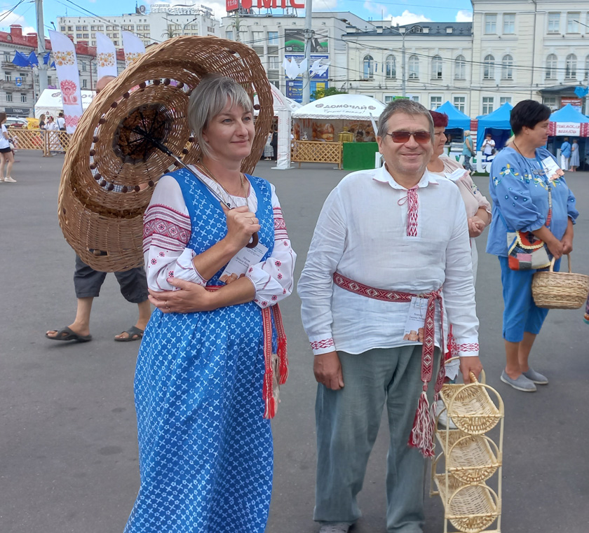 Шумілінскі раённы дом рамёстваў прадстаўлялі Натал-ля Пятрова і Уладзімір Каласкоў (на здымку). Прыемна ад-значыць, што абодва ўдзельнікі сталі ўладальнікамі дыпломаў другой ступені: Наталля Пятрова – у намінацыі «Выраб у камбінацыі з прыроднымі матэрыяламі», Уладзімір Каласкоў – у намінацыі «Дэкаратыўны выраб з лазы».