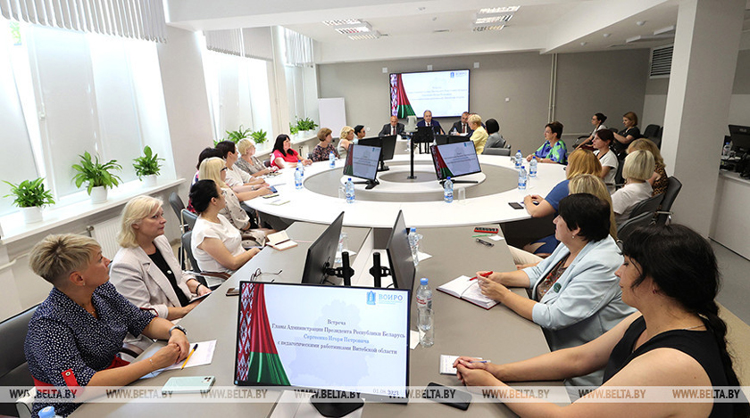 Результаты вступительной кампании в организационном плане, нужно ли возвращать устный экзамен, в какие дни лучше проводить ЦЭ — такие вопросы обсудил глава Администрации Президента Беларуси Игорь Сергеенко с педагогами на встрече в Витебске, передает корреспондент БЕЛТА.