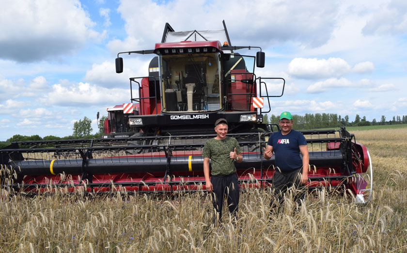 Для сямейнага экіпажа Ткачовых з КУСГП «Сіроцінскі», родных братоў Яўгена і Андрэя, сёлетняе жніво асабліва радаснае — яны атрымалі ключы ад новага камбайна GS12A1 PRO вытворчасці «Гомсельмаш», набытага на сродкі рэспубліканскага бюджэту, і выехалі на палеткі.