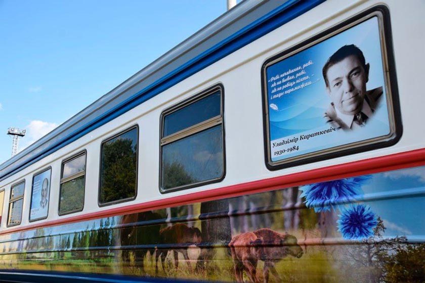 отличать назначенные поезда в праздничные дни будут специально нанесенные на них логотипы Дня белорусской письменности — изображения знаменитых белорусских писателей и поэтов, цитаты из их произведений. Художники подготовили порядка полутора десятка эскизов, которые после утверждения будут воплощены на вагонах.