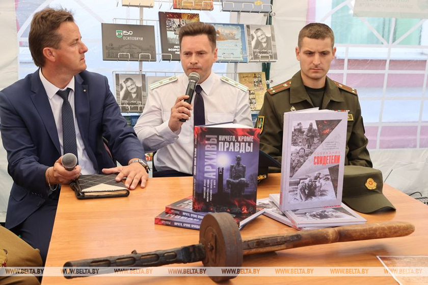 Издание «Последние свидетели» было создано совместно с Генпрокуратурой Беларуси, а книга «Архивы. Ничего, кроме правды» стала результатом совместного проекта с Министерством юстиции. В этих книгах раскрывается страшная правда о зверствах фашистов на белорусской земле и как уничтожалось мирное население. Об этом школьникам из Городка рассказали первый заместитель генерального директора БЕЛТА Василий Матвеев, зампрокурора Городокского района Александр Филиппенко и командир 52-го поискового батальона Минобороны Андрей Рубин.