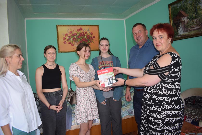 Алеся Шавяка расказала моладзі пра льготны крэдыт «Беларусбанка» для маладых спецыялістаў, якім яны маюць права карыстацца. А Вольга Пусянкова ад прафсаюза работнікаў АПК уручыла дзяўчатам электрачайнік – будуць у канторы піць каву.