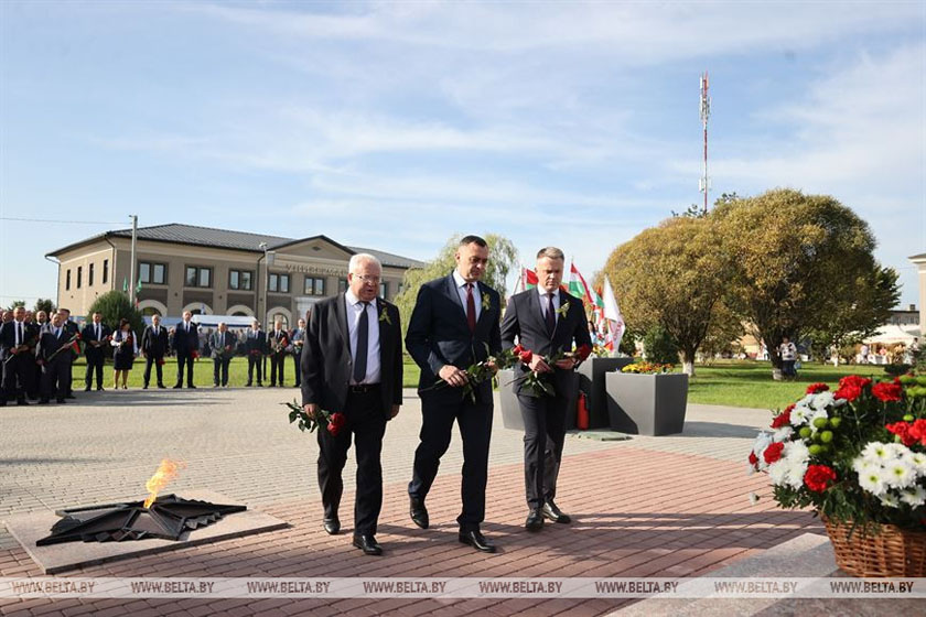 Областные «Дажынкi» в Шарковщине начались с возложения цветов к братской могиле жертв Великой Отечественной войны и минуты молчания на площади Ленина городского поселка, передает корреспондент БЕЛТА.