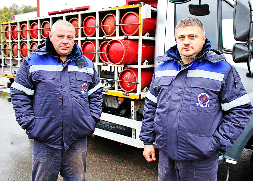 Балоны са звадкаваным газам жыхарам раёна дастаўляюць вадзіцель аўтамабіля для перавозкі балонаў Юрый Клюеў і слесар Аляксей Мандрык. За змену колькасць дастаўленых балонаў можа дасягаць і 70 штук – усё залежыць ад колькасці заявак.