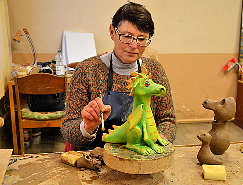 Для майстроў навагоднія сувеніры – бязмежны палёт фантазіі. Драконаў, сімвал новага 2024 года, як і любы іншы керамічны выраб, яны прыдумваюць самі. Тут няма двух аднолькавых, кожны непаўторны і арыгінальны. «Якія сімпатычныя. Не злыя і каварныя, як мы прывыклі бачыць…», – не вытрымаў карэспандэнт. На што Аляксандр Захарэнка з гумарам адказаў: «А ты што, бачыў жывых драконаў? У нас у Обалі нараджаюцца менавіта такія драконы».