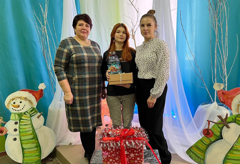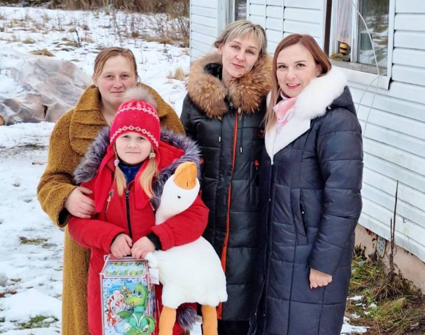 Загадчык сектара Ірына Ласянкова і галоўны спецыяліст Вольга Данчанка наведалі сям’ю Наталлі Кодыравай з Мішкавіч і ўручылі навагоднія падарункі яе дачцэ Кацярыне.
