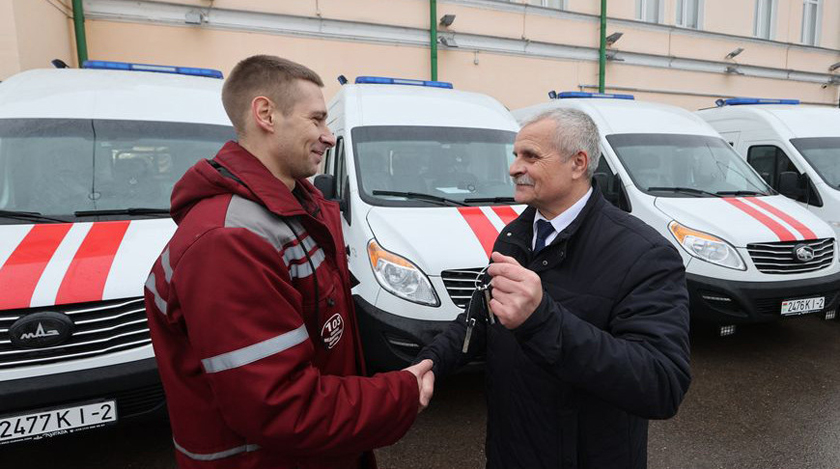 «Автопарк службы скорой помощи области обновился почти на 80%. Всего в этом году регион получил 45 спецавтомобилей, из которых 12 были переданы Банком развития в начале этого года. Это улучшит оперативность, качество работы бригад скорой помощи на вызовах, в том числе в сельской местности. Сейчас идет централизация службы скорой медицинской помощи (СМП), в этом году был образован межрайонный центр на базе Полоцкой станции СМП, в который вошли Новополоцкая станция, отделения СМП в Лепеле, Россонах, Верхнедвинске, Ушачах. Туда отправятся 14 новых автомобилей СМП, и таким образом весь автопарк этого межрайонного центра будет обновлен. Сейчас в области работают 113 бригад скорой помощи и 147 спецавтомобилей. В следующем году будет завершаться централизация службы СМП области, и планируется приобрести еще 38 таких автомашин», — рассказал главный врач Витебского областного центра скорой медицинской помощи Виктор Гомонов.