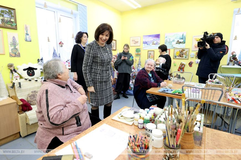 Она также побывала в комнатах для проживания, ознакомилась с условиями, предоставляемыми подопечным в Городском доме-интернате для ветеранов войны и труда «Свiтанак», побеседовала с пожилыми людьми.