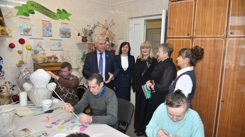 Председатель Палаты представителей поздравил коллектив дома-интерната и проживающих в нем людей с рождественскими и новогодними праздниками, поинтересовался, что их заботит. Он также ознакомился с созданными в учреждении условиями, выставкой изделий, созданных проживающими в доме-интернате и посетителями районного территориального центра соцобслуживания населения. Волнующие вопросы людей серебряного возраста участники встречи обсудили за круглым столом «Поделись теплом своей души».