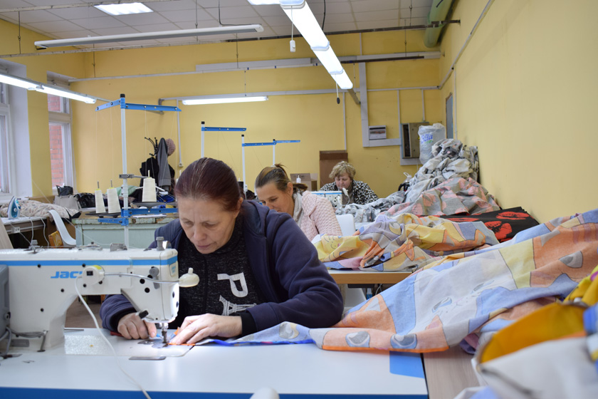 «На новай вытворчасці мы працуем з 1 лістапада, – расказала майстар цэха Валянціна Ізафілава. – Звычайных прасцін нам трэба пашыць за дзень 90 штук на чалавека, на рызінцы – 50 штук. План выконваем і перавыконваем, бо швачкі ўсе вопытныя. Шыем камплекты пасцельнага – еўра, двухспальныя, аднаспальныя і дзіцячыя. За месяц пашылі больш за тры тысячы камплектаў. Раскроем займаецца Юля Рудак. Матэрыял – бязь, сацін, паркаль – нам прывозяць. Прадукцыя ідзе оптам на экспарт у Расійскую Федэрацыю».