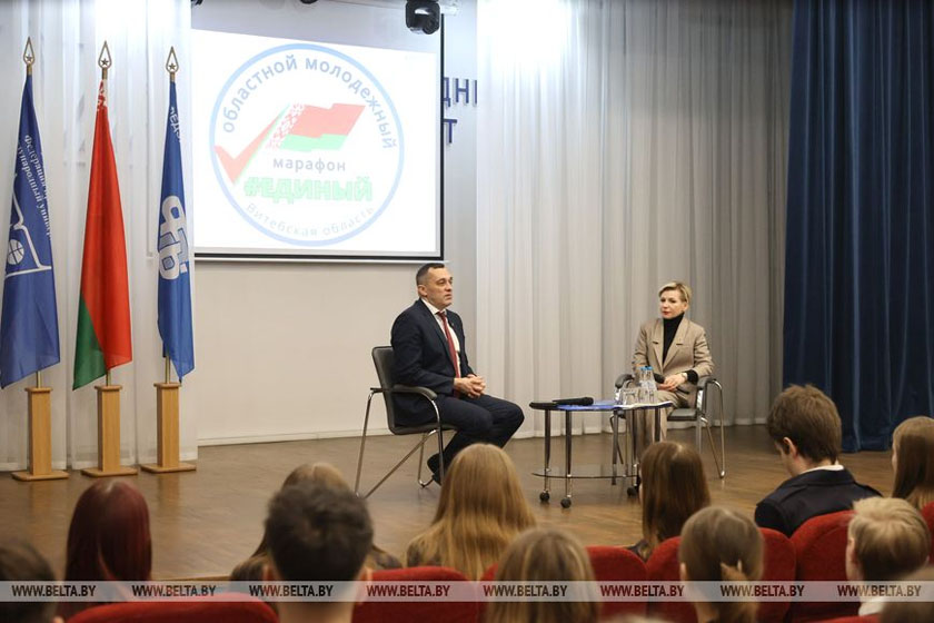 Александр Субботин напомнил в диалоге со студентами вуза о значимых для северного региона проектах, намеченных на 2024-й. Подготовка к ним уже усиленно ведется. Большое количество гостей область ожидает во время Форума регионов Беларуси и России. Задача — красиво их принять, чтобы все почувствовали себя дома. Электоральная кампания также станет очень ответственным периодом. Глава северного региона обратил внимание, что впервые в истории нашей суверенной страны пройдет единый день голосования. «Каждый из нас может принимать участие в судьбе нашего государства. В Конституции отмечено, что это священное право каждого гражданина, — подчеркнул Александр Субботин. — У вас есть это право, и вы можете его реализовать через три недели, отдав свой голос за того или иного избранника, тем самым поучаствовав в развитии и дальнейшей эволюции своего края, малой родины, большой Родины, своего региона».