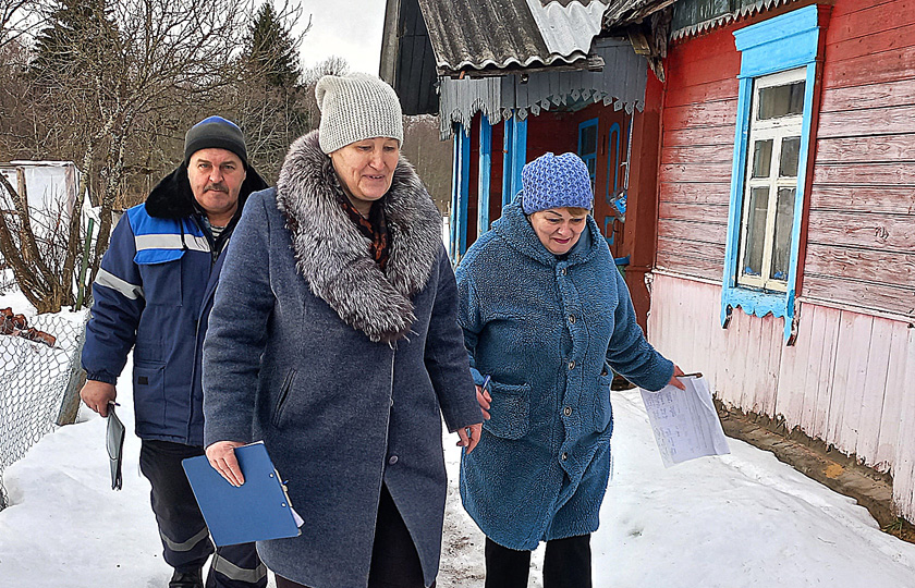 Камісія накіравалася спачатку ў вёску Жданоўка, пасля ў Заобаль. У цэнтры ўвагі – адзінокія і пажылыя грамадзяне, сем’і, якія выхоўваюць дзяцей. Падчас абходу, пакуль прадстаўнікі службаў робяць агляды па сваіх накірунках, старшыня сельсавета цікавіцца жыццём людзей, праблемамі, якія ёсць. Папярэджвае пра пільнасць у адносінах да махляроў. Абавязкова пытаецца пра дровы: ці ёсць, ці хапае, ці няма праблем з набыццём? У адной з хат паскардзіліся на вулічны ліхтар, які не гарыць. Галіна Уладзіміраўна запісвае скаргу, каб перадаць у РЭС. Тая ж схема і ў Заобалі. Старшыня сельсавета цікавіцца абстаноўкай на ферме, падвозам кармоў, дысцыплінай. У кожным доме старшыню шчыра вітаюць, бачна, што яе ведаюць, з ёй дзеляцца праблемамі, раяцца.