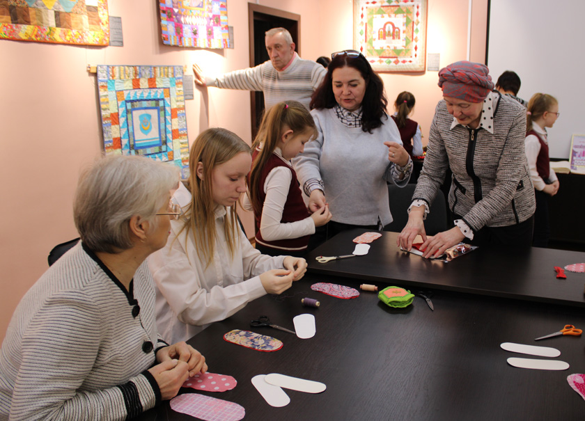 У заключэнне Ніна Ярмух правяла майстар-клас, на якім кожны меў магчымасць зрабіць невялікі сувенір у тэхніцы абрэзкавага шыцця.