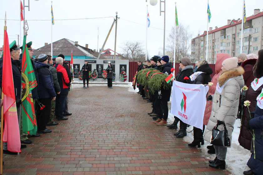 У Скверы воінскай славы каля помніка воінам-землякам адбыўся мітынг “Афганістан: наша памяць і боль”, на які сабраліся воіны-інтэрнацыяналісты, прадстаўнікі грамадскіх арганізацый, работнікі ўстаноў і прадпрыемстваў, школьнікі.