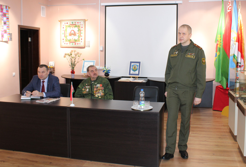 – Ваша арганізацыя вядзе актыўную работу з моладдзю па патрыятычным выхаванні, – сказаў Мікалай Аляксеевіч, звяртаючыся да ўдзельнікаў сустрэчы. – На жаль, зусім мала застаецца ветэранаў Вялікай Айчыннай вайны (сёння ў раёне жывуць тры ветэраны, якім за 90 год), і яны перадаюць вам сваю эстафету па выхаванні падрастаючага пакалення. Вы з гонарам выканалі свой воінскі і грамадзянскі абавязак і годна прымеце ў ветэранаў вайны эстафету.